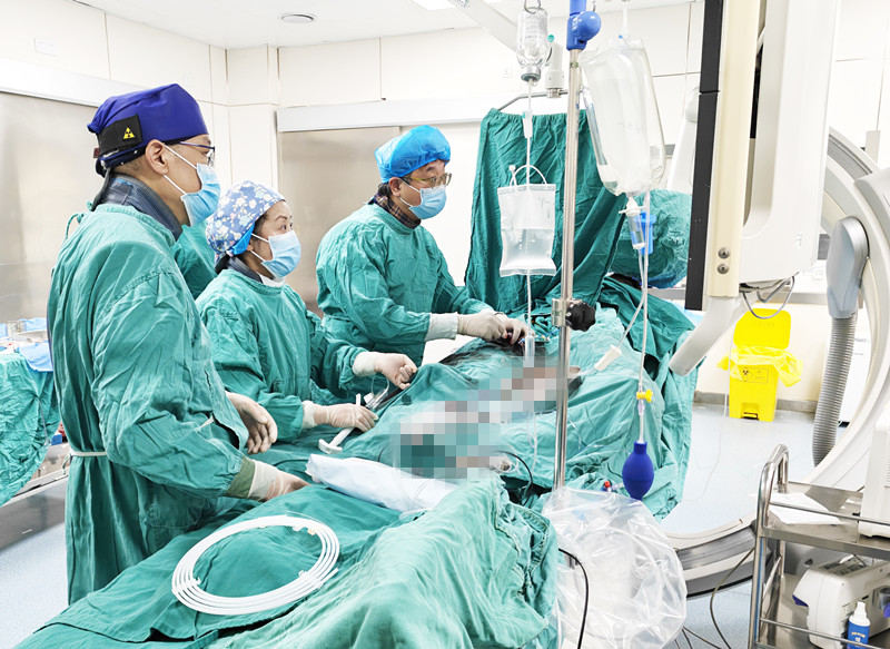 患者抵達(dá)自貢市中醫(yī)醫(yī)院時(shí),直接被送入導(dǎo)管室,早已在導(dǎo)管室嚴(yán)陣以待的心血管專家團(tuán)隊(duì),以嫻熟的技術(shù)和豐富的經(jīng)驗(yàn),迅速為患者進(jìn)行了冠脈造影檢查,明確了病變血管,并成功開(kāi)通閉塞血管,植入支架,恢復(fù)了心肌的血液灌注。整個(gè)救治過(guò)程緊張有序,從患者進(jìn)入醫(yī)院到血管開(kāi)通,僅用時(shí)38分鐘,遠(yuǎn)遠(yuǎn)低于國(guó)際標(biāo)準(zhǔn)的90分鐘,再次刷新了醫(yī)院胸痛中心救治速度的新紀(jì)錄。