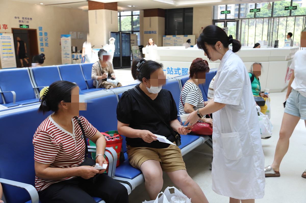 “您好!請喝杯酸梅飲?!薄疤鞖鉄?,您喝杯清涼茶飲消消暑。”醫(yī)院對患者的貼心關(guān)懷,不只是表達(dá)在語言中,更體現(xiàn)在行動中?!斑@么熱的天,你們工作那么忙,還給我們送解熱降暑的中藥茶飲,真是太感謝了!”“醫(yī)院考慮太周到了!”一杯酸梅飲拉近了醫(yī)院和患者之間的距離。