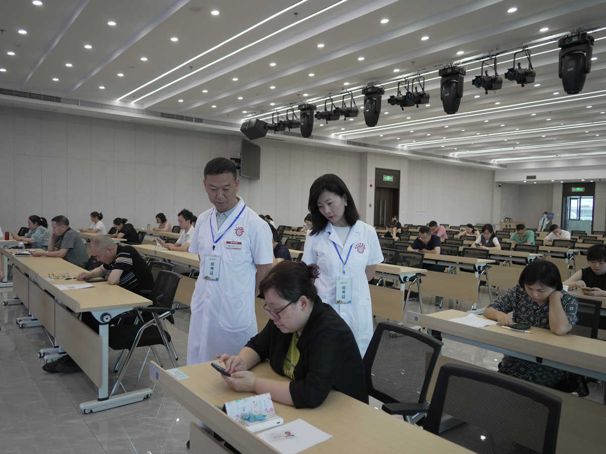 考試期間,市衛(wèi)健委中醫(yī)科科長(zhǎng)曾曉玲、市中醫(yī)醫(yī)院副院長(zhǎng)雷從杰進(jìn)行巡考,確??荚噰?yán)格按照規(guī)定進(jìn)行。本次考試采用網(wǎng)絡(luò)人機(jī)對(duì)話形式,涵蓋中醫(yī)四大經(jīng)典內(nèi)容。為保障考試順利進(jìn)行,考場(chǎng)嚴(yán)格按照要求布置,配備監(jiān)考老師、備用手機(jī)和無線網(wǎng)絡(luò)。