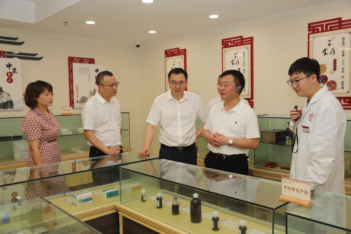 7月10日,市人大常委會副主任王孝謙一行調研我院大健康產(chǎn)業(yè)發(fā)展情況。市衛(wèi)健委副主任陳曦,市中醫(yī)醫(yī)院黨委書記申奎,黨委副書記、副院長何文勛陪同。