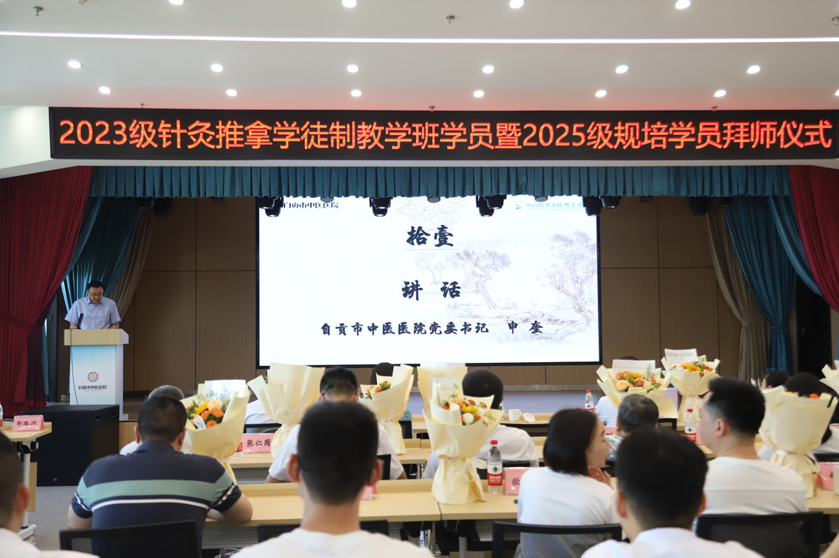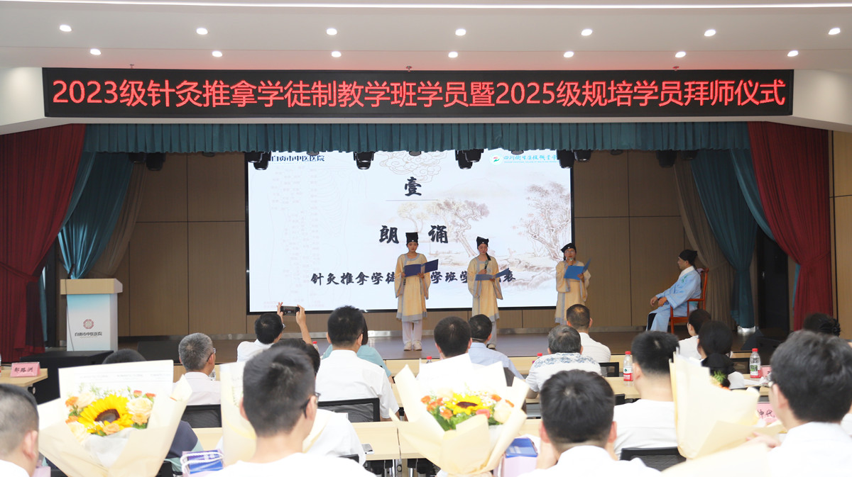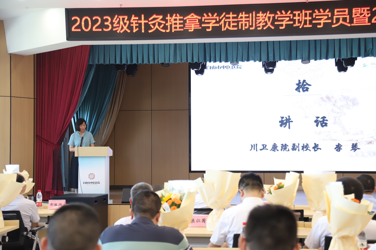 8月20日,四川衛(wèi)生康復(fù)職業(yè)學(xué)院、市中醫(yī)醫(yī)院聯(lián)合舉辦的2023級針灸推拿學(xué)徒制教學(xué)班學(xué)員暨2025級規(guī)培學(xué)員拜師儀式在臥龍湖院區(qū)舉行。衛(wèi)康院副校長李琴,市中醫(yī)醫(yī)院黨委書記申奎,院校相關(guān)部門負(fù)責(zé)人,部分規(guī)培師承導(dǎo)師及針推班導(dǎo)師代表等參會。
