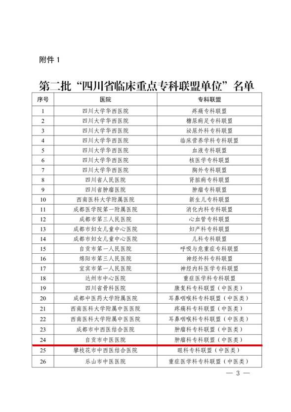 11月21日,四川省衛(wèi)生健康委員會和四川省中醫(yī)藥管理局聯(lián)合印發(fā)《關于印發(fā)第二批“四川省臨床重點??坡?lián)盟單位”名單的通知》,公布了第二批26個省級臨床重點專科聯(lián)盟單位,我院腫瘤科牽頭組建的專科聯(lián)盟入選。